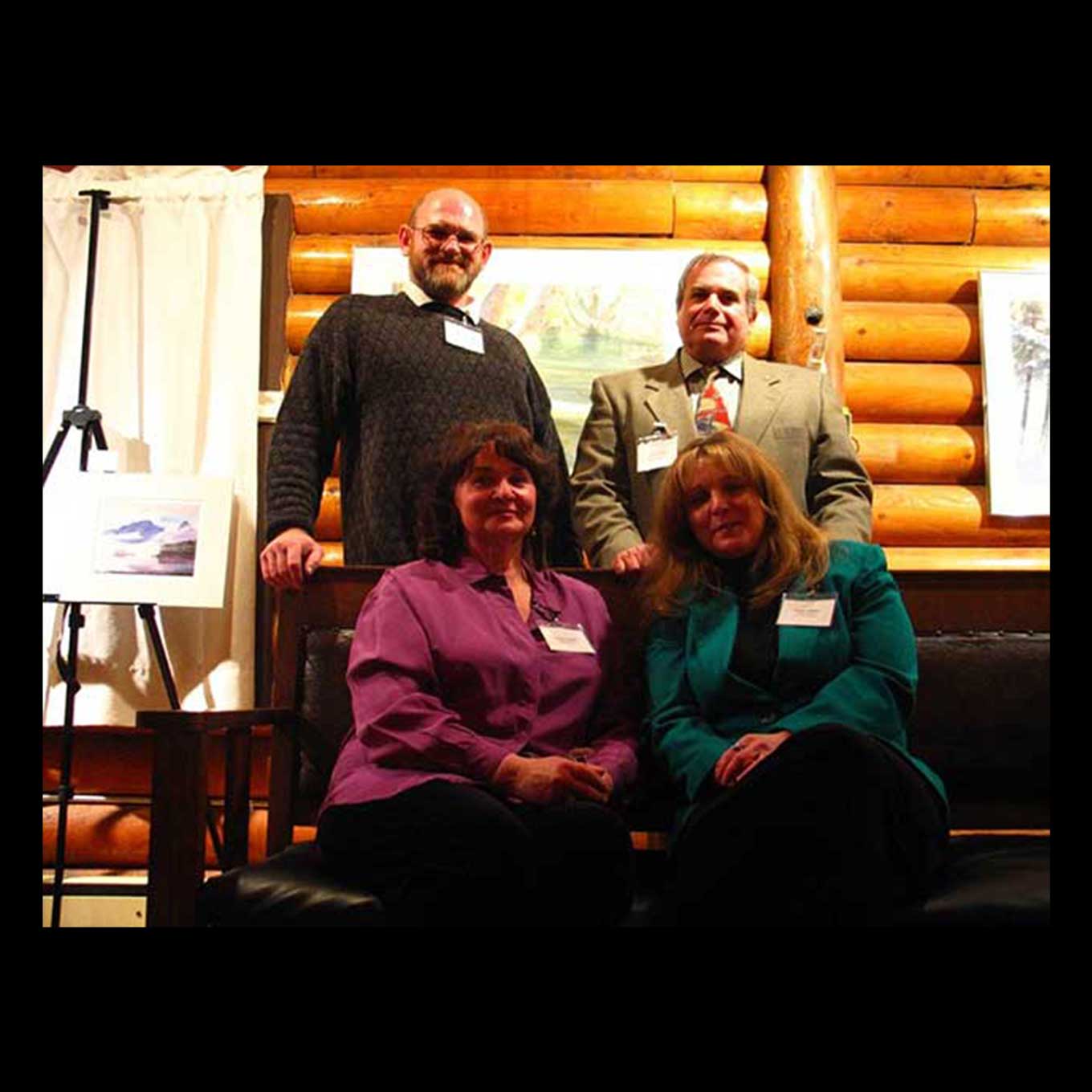 Vladimir; me; Sandra Giddings one of the original watercolor enthusiasts; Tammy Phillips, an up-and-coming artist who later opened her own gallery in Fairbanks.