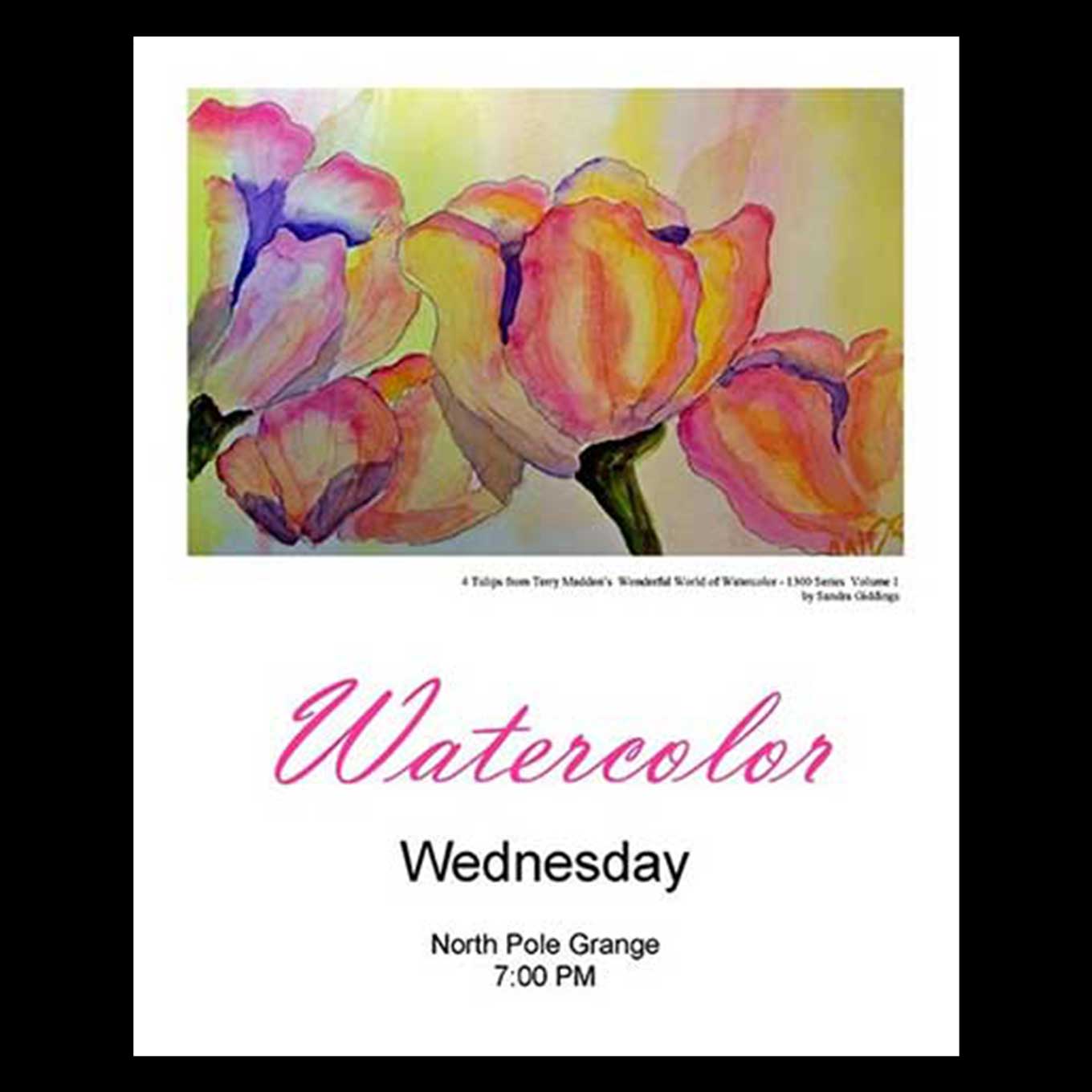 It began with an afternoon watercolor workshop presented by Tom Nixon at Ben Franklin’s early in 2006. Maybe a dozen people attended, including me. We asked if Ben Franklin would be doing these workshops on a regular basis, but that wasn’t in the cards. I offered the Grange as a place for the group to meet on the following Wednesday evening to figure out how to keep the activity alive. That quickly became a series of Wednesday get togethers for watercolor enthusiasts who called themselves “Watercolor Wednesday.”